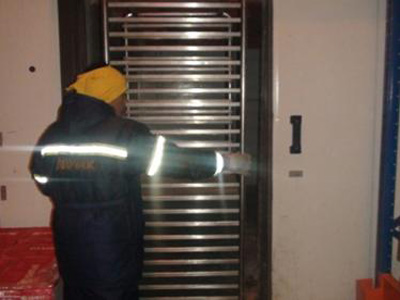 This refers to the use of a -37 °C air blast room with stainless steel trolleys and having a dimension of 3.3 meters (W) x 4 meters (L) x 2.5 meters (H).